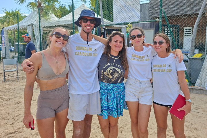 Les membres du bureau du Ouanalao Beach Volley, organisateur de la compétition : Mélina Scordia (vice-secrétaire), Ryan Peter (vice-président), Salomé Gautier (secrétaire), Lisa Bernier (trésorière) et Rossella Grimaldi (présidente).
