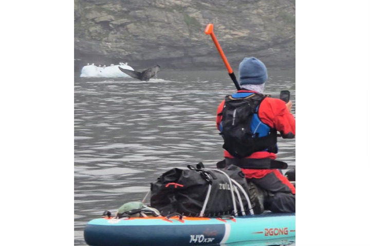 Le confort est sommaire mais le plaisir est total, surtout lorsque que l’on rame au milieu d’une dizaine de baleines. « Malgré leur taille hors norme, elles ne font ni bruits, ni vagues quand elles sondent ou qu’elles sortent de l’eau. C’est bluffant de grâce une baleine, faut pas croire… par contre, quand elles soufflent, tout tremble dans un bruit assourdissant », se remémore Mickey, qui a des souvenirs extraordinaires plein la tête : « Pour mes 52 ans, je me suis baigné dans de l’eau à 2°, au milieu des icebergs. J’ai ramé avec des phoques et j’ai pris le temps de contempler des paysages toujours plus époustouflants, en paddle, ou en randonnant... c’est un beau cadeau d’anniversaire ! »