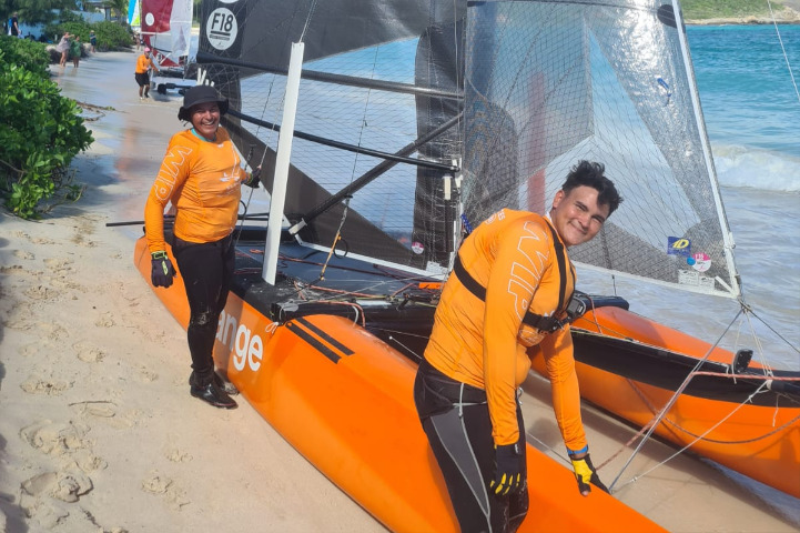 Parmi les 48 catamarans F18 engagés dans la compétition, quatre vont être barrés par un tandem entièrement local. Sur le bateau « Orange », le duo pousse même le bouchon un peu plus loin, puisque ce sont deux frères qui vont se jeter dans l’aventure. Jonah et Fenesoa Raveloson, respectivement âgés de 25 et 21 ans. « En grandissant ici, j’ai toujours fait de la voile, explique Jonah. J’ai continué en France quand je suis parti pour mes études. En revenant, j’ai eu l’opportunité de naviguer sur un F18, ce qui m’a permis de faire de la régate et de réaliser ce rêve d’enfant : courir avec les grands et essayer de me mettre au même niveau. » Son frère a lâché un peu plus vite la voile en compétition mais, quand Jonah lui a proposé de s’inscrire à la Cata Cup en 2021, il n’a pas hésité. Car cette année, c’est la cinquième fois que Jonah et Fenesoa se mêlent à la flotte de la St-Barth Cata Cup.