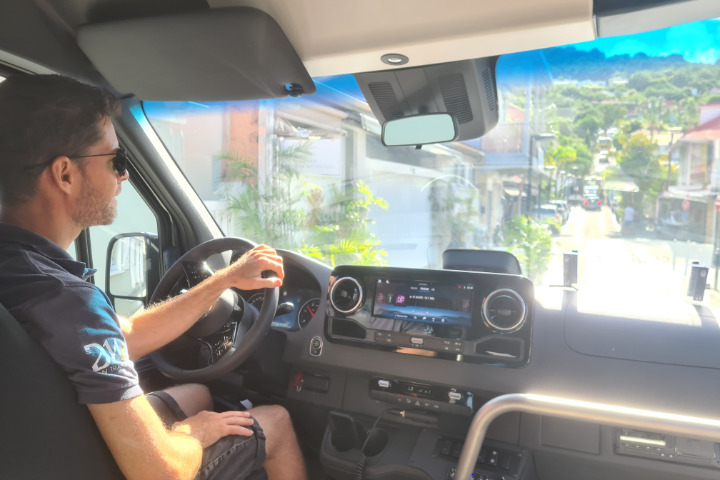 « On a plus de monde aujourd’hui », confirme David, le chauffeur du deuxième bus, de 13 places celui-ci. Le temps pour le public cible de comprendre le système d’inscription par le biais de l’application de la Collectivité, mais aussi d’être convaincu de l’utilité du service. « La communication n’a pas été très bonne, estime une passagère. Certaines personnes ont cru que c’était réservé aux commerçants et aux habitants de Gustavia. Ce n’était pas forcément très clair. Un peu comme cette histoire d’inscription sur l’application. » Une absence de clarté toute relative puisque le système a été vite compris par les premiers usagers.